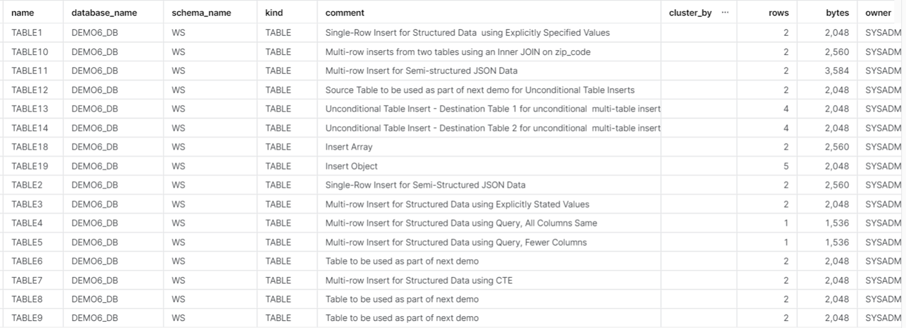 COMMENT = "Multi-row Insert for Semi-structured JSON Data";