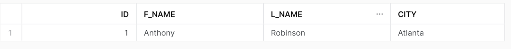 (1, 'Anthony', 'Robinson', 'Atlanta'),